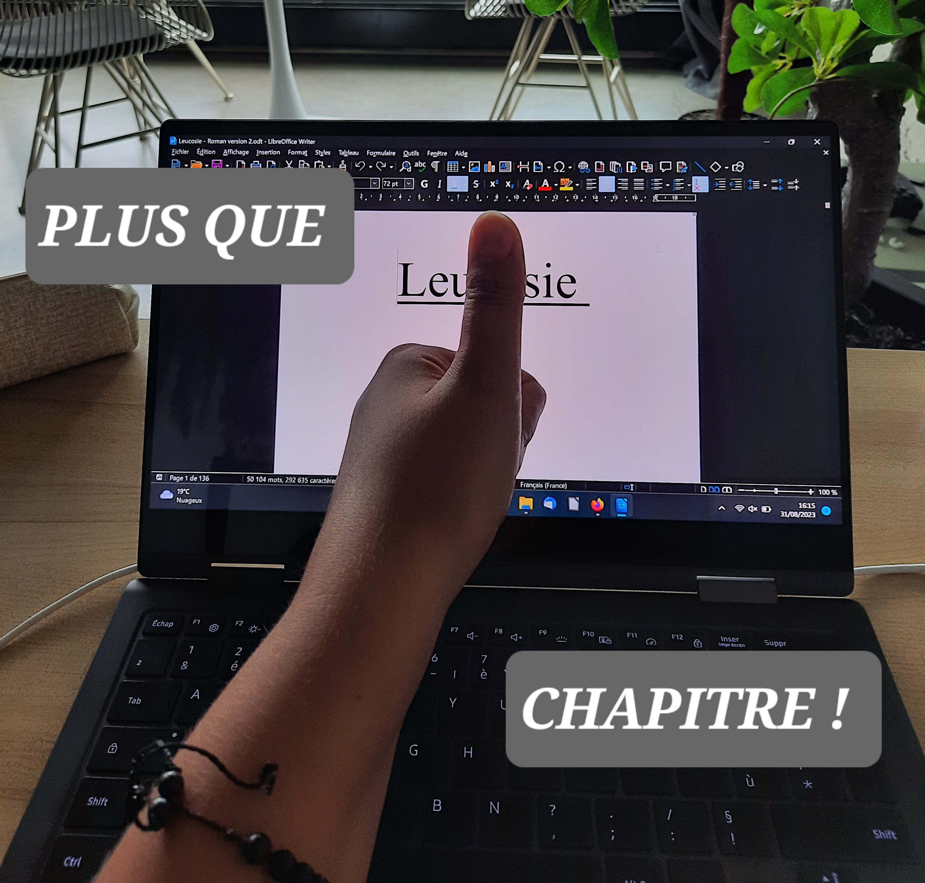 Et oui, ça y est ! Plus qu’un seul chapitre à écrire.