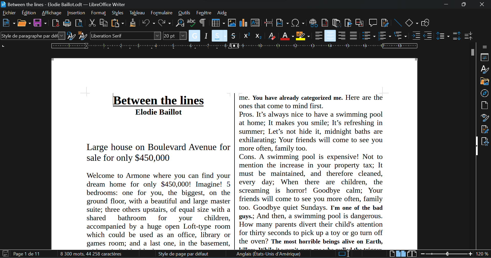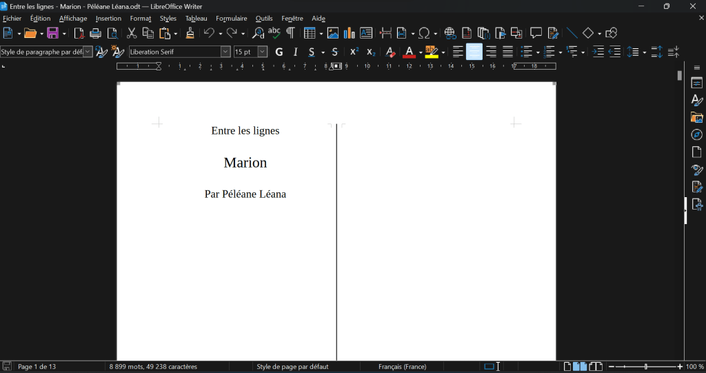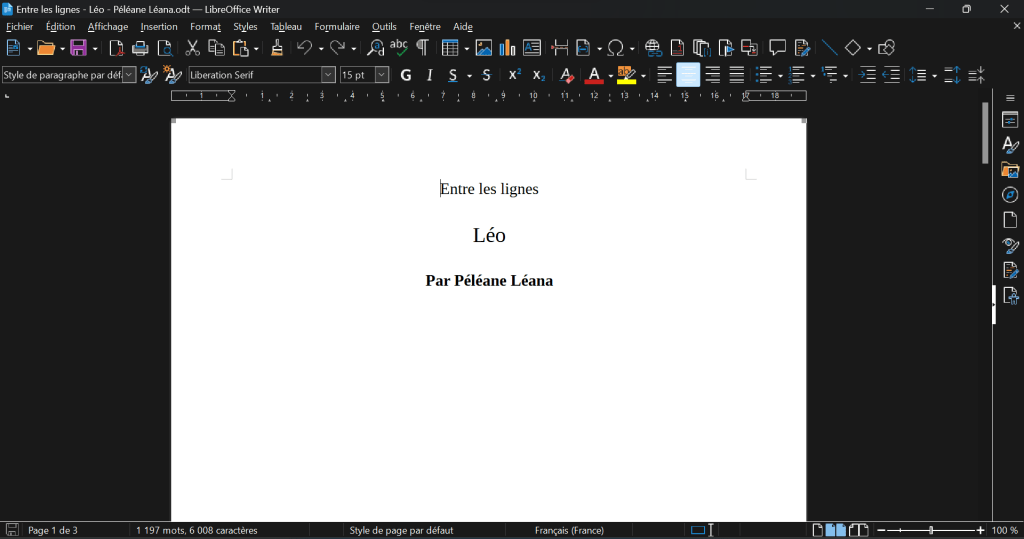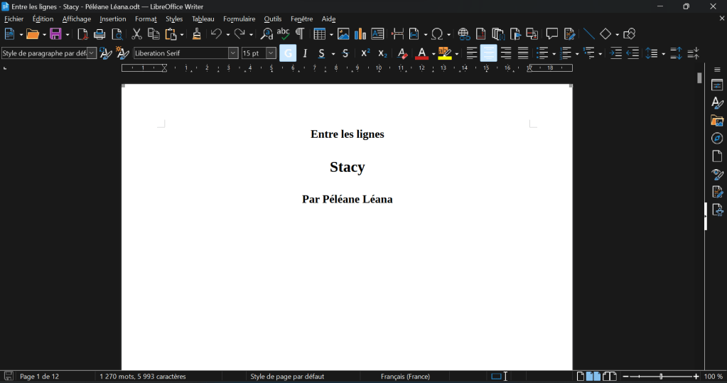 J’ai fini mon très court roman Entre les lignes, qui donne donc :