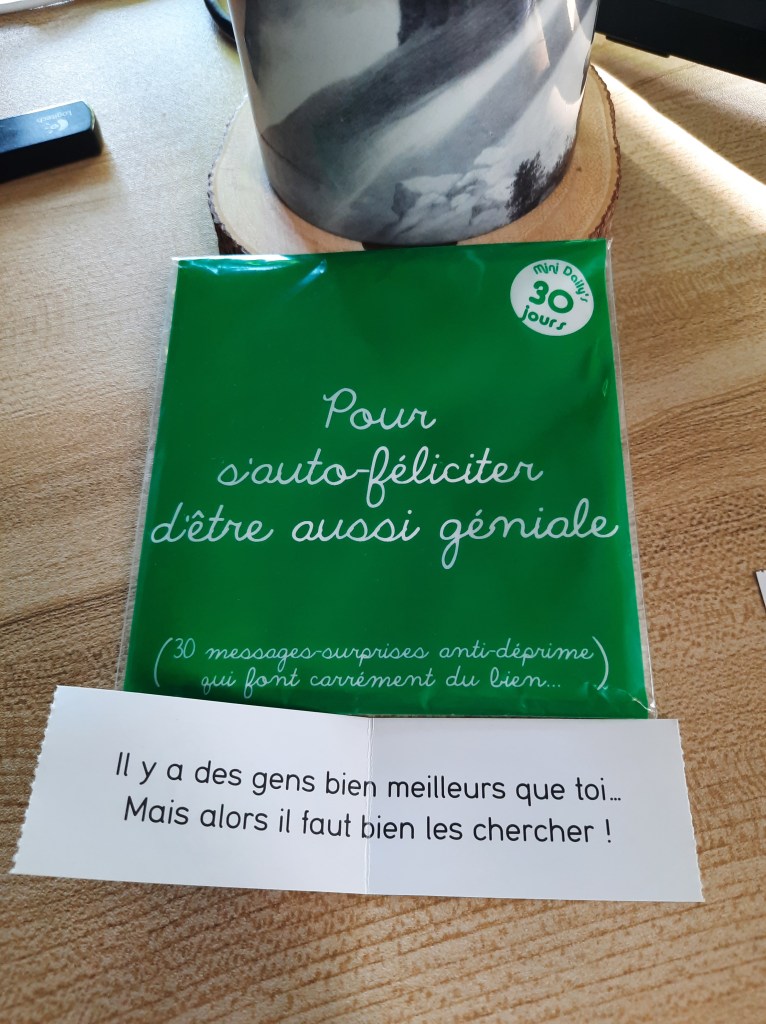 Et pour finir, comme la dernière fois, le mantra rigolo de la journée ^^, avec le mug de café obligatoire !